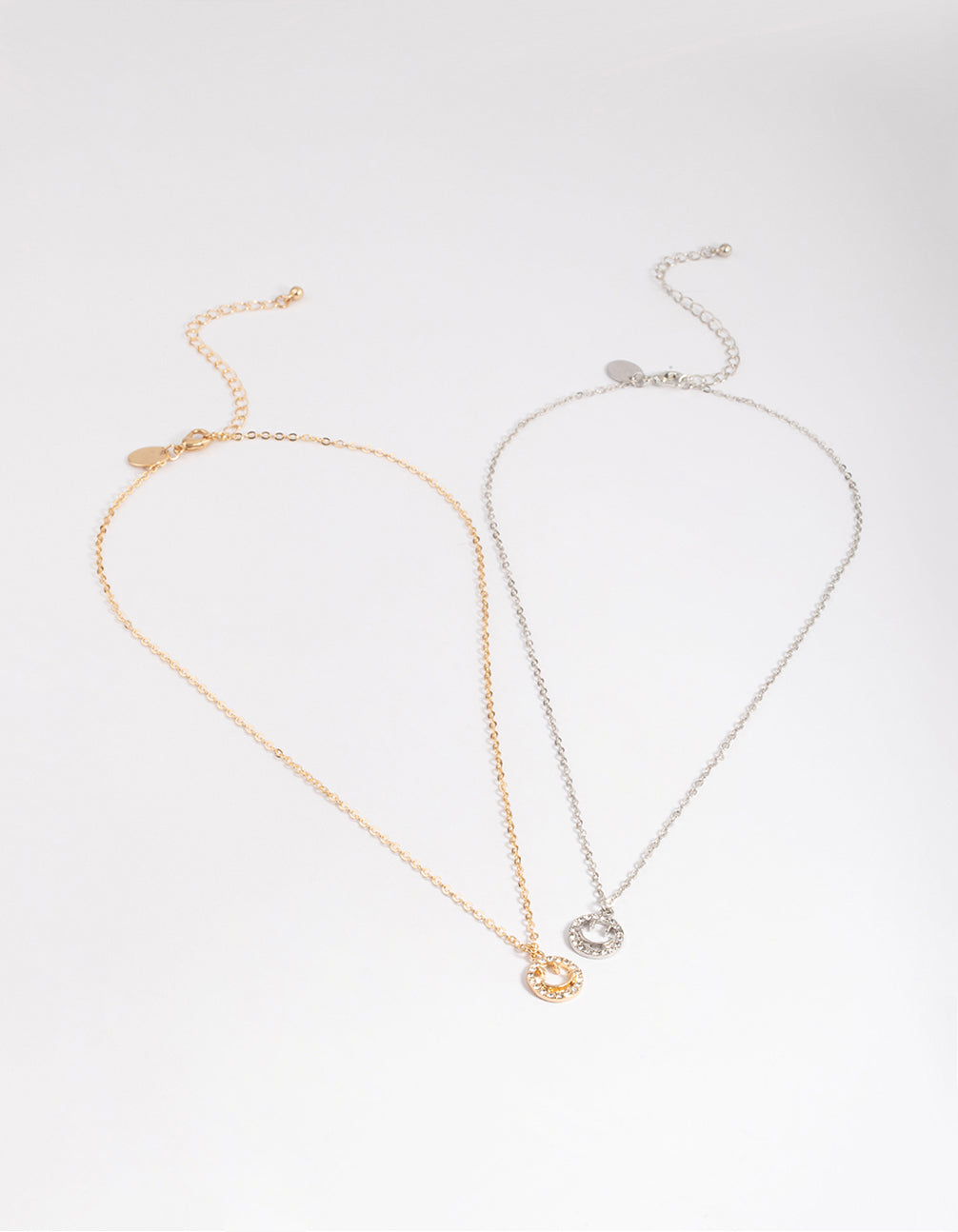 Mixed Metal Cute Diamante Smiley Necklace Pack