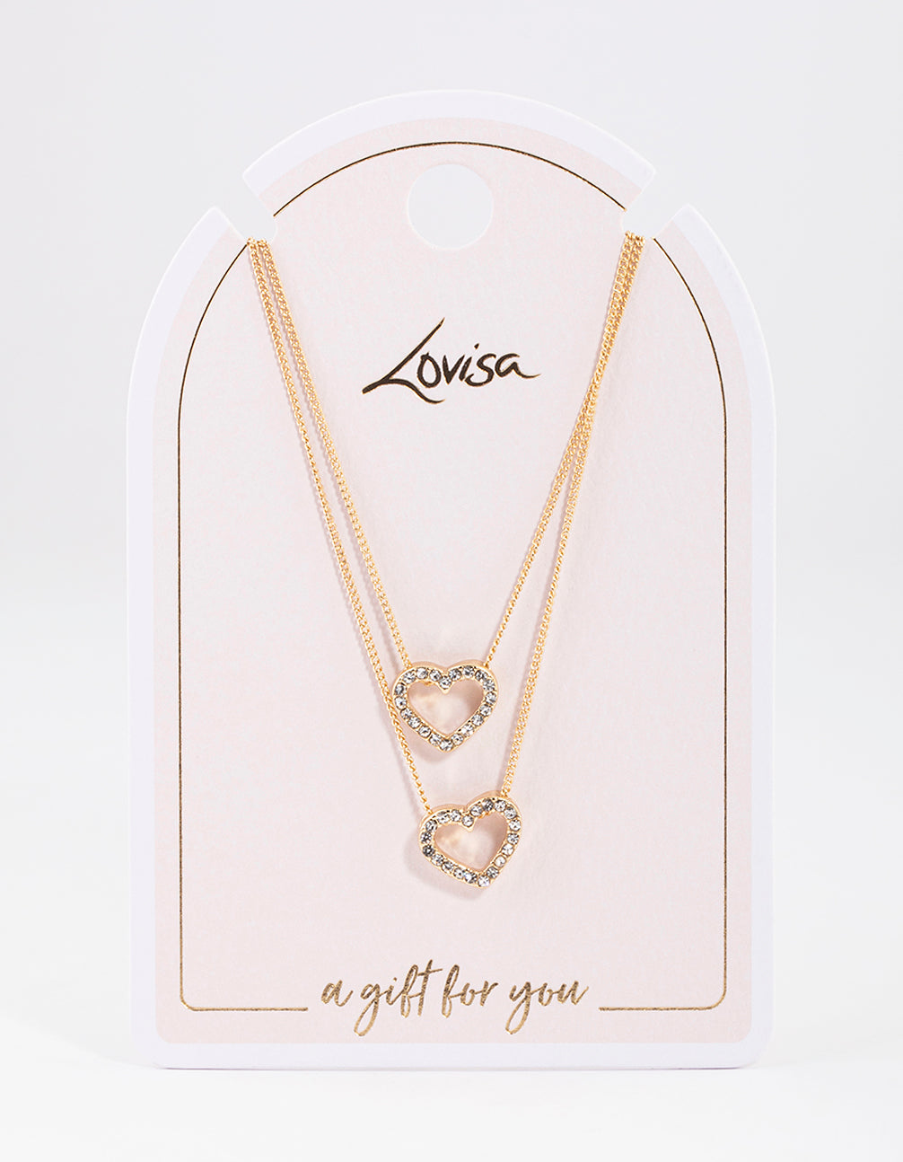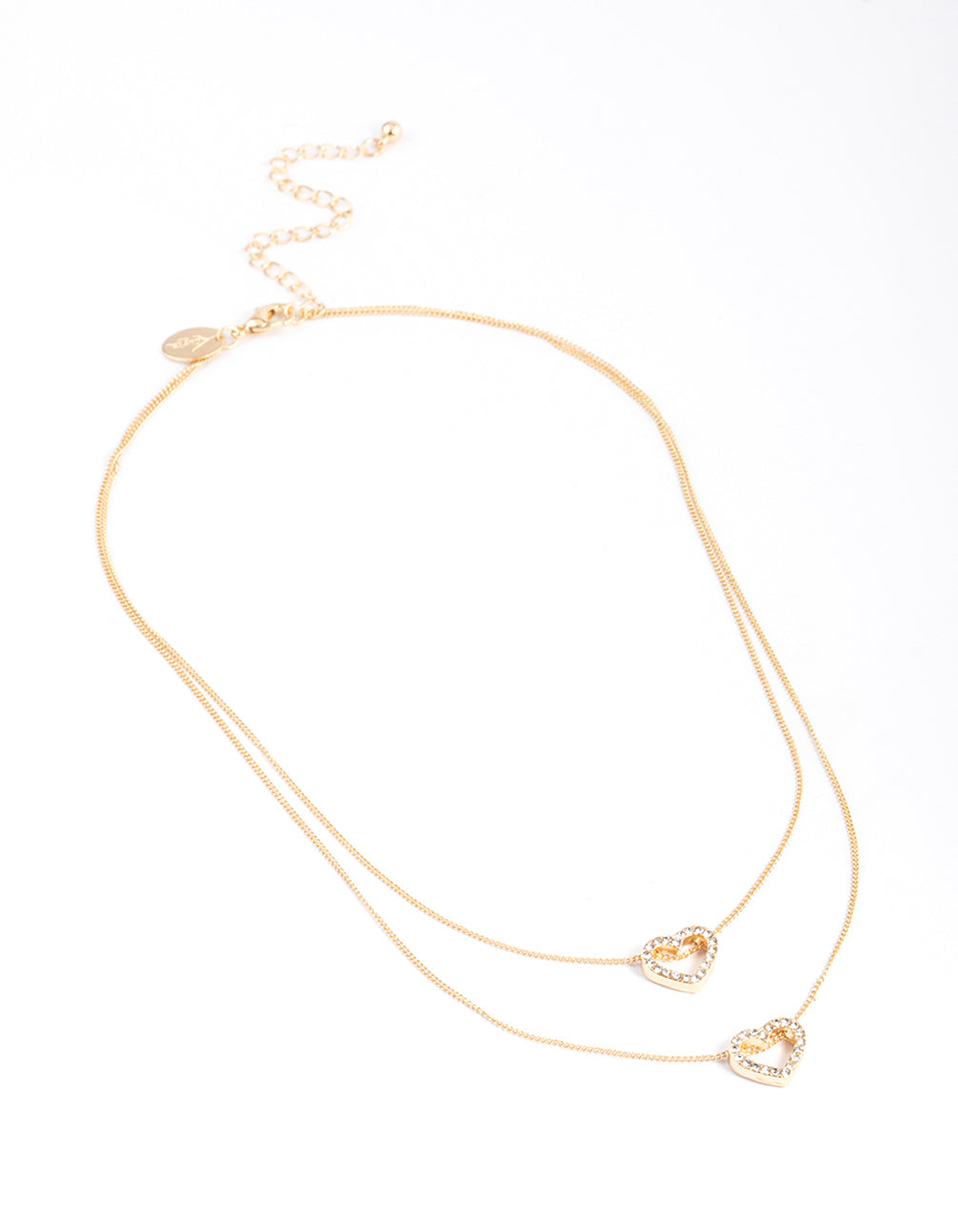 Gold Double Diamante Open Heart Layered Necklace Gold Double Diamante Open Heart Layered Necklace Gold Double Diamante Open Heart Layered Necklace
