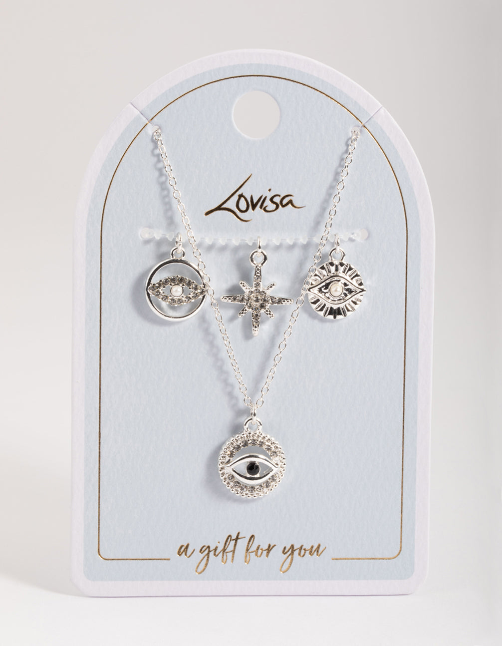 Silver Celestial & Evil Eye 4 Chain Necklace Silver Celestial & Evil Eye 4 Chain Necklace Silver Celestial & Evil Eye 4 Chain Necklace