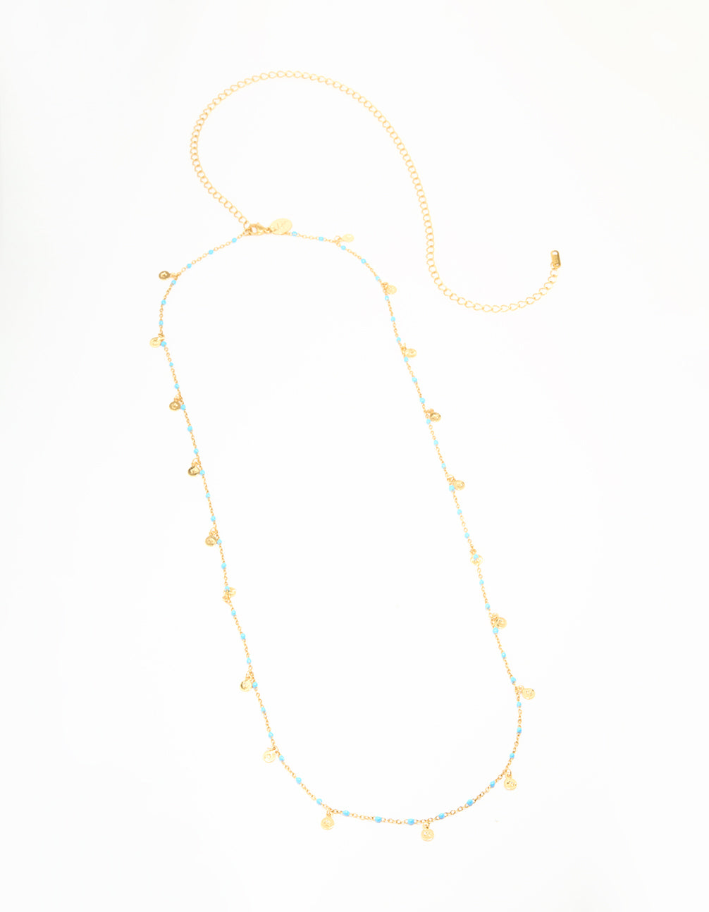 Waterproof Gold Plated Stainless Steel Blue Beaded Dainty Waist Chain