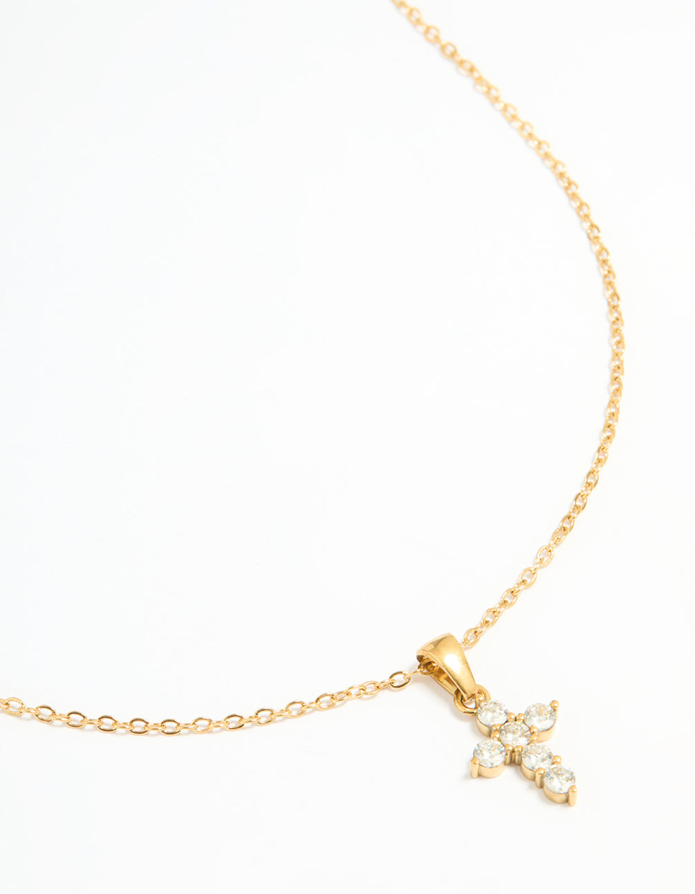 Waterproof Gold Plated Stainless Steel Cubic Zirconia Cross Pendant Necklace