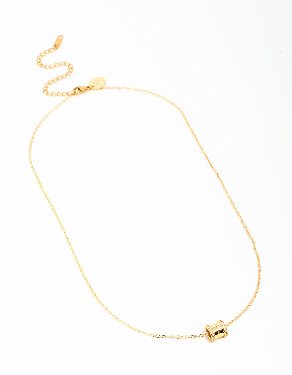 Waterproof Gold Plated Stainless Steel Cubic Zirconia Rondell Pendant Necklace