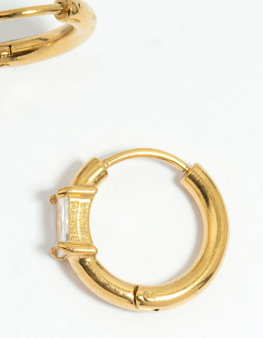 • Waterproof Gold Plated Stainless Steel Cubic Zirconia Stud & Huggie Earrings 2-Pack - link has visual effect only