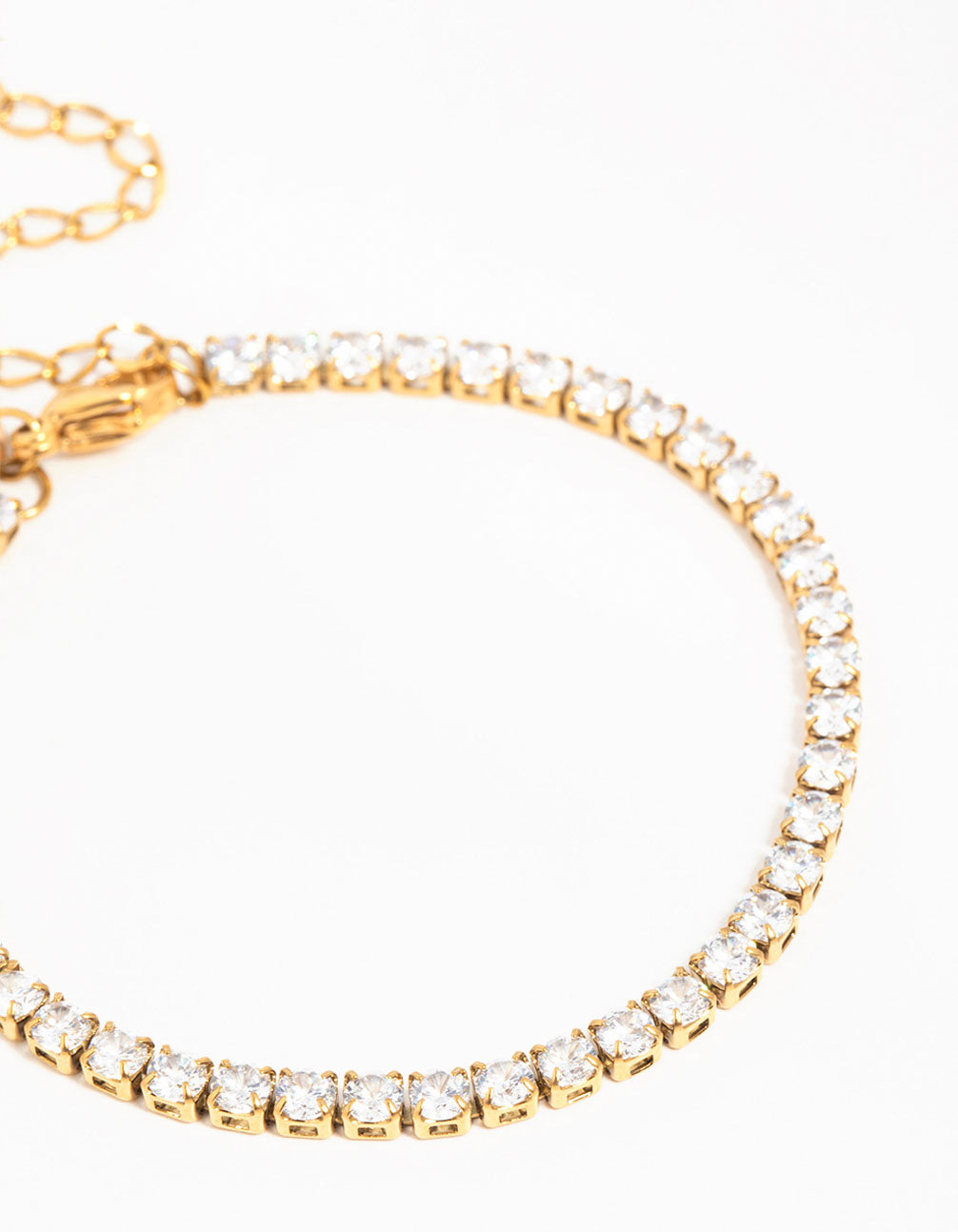 Waterproof Gold Plated Stainless Steel Cubic Zirconia Tennis Bracelet