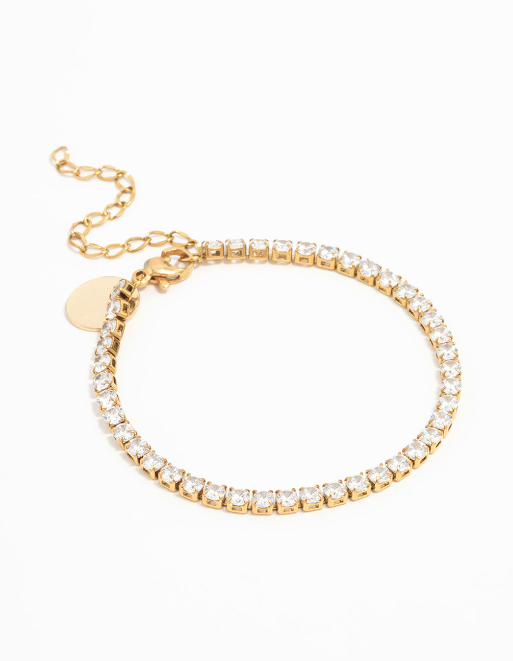 Waterproof Gold Plated Stainless Steel Cubic Zirconia Tennis Bracelet