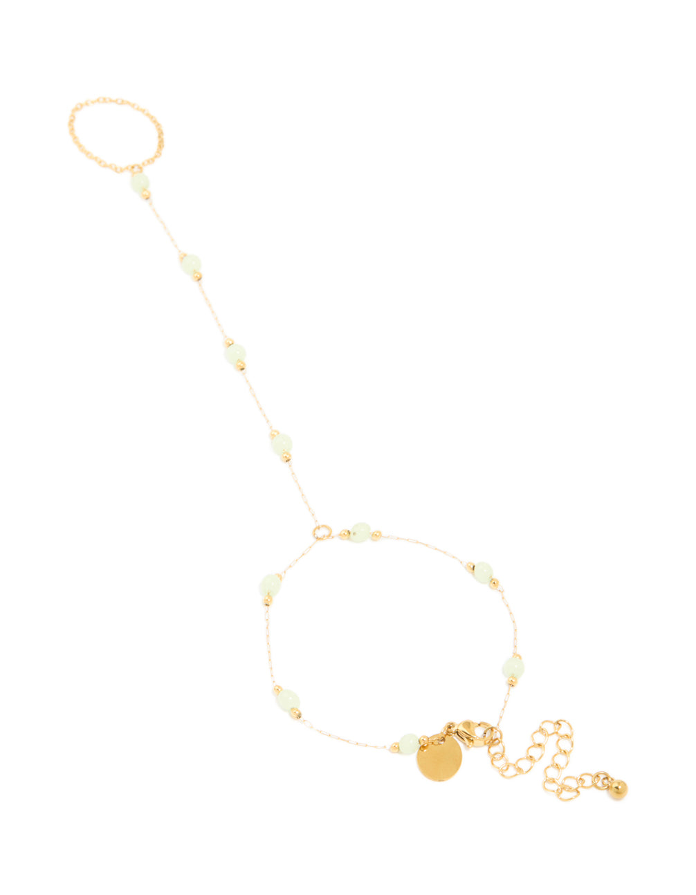 Add a touch of elegance and meaning to your look with this Waterproof Gold Plated Stainless Steel Green Jade Semi Precious Stone Hand Chain. This unique hand chain is crafted from durable stainless steel with a luxurious gold plating, making it both stylish and practical. Featuring beautiful green jade stones, this piece brings a pop of colour and a sense of serenity to your jewellery collection. Perfect for any occasion, it’s waterproof, so you can wear it confidently whether you’re at the gym, the beach, or simply washing your hands. Jade is often associated with abundance, wisdom, and inner peace, making this piece as meaningful as it is fashionable. Pair it with a flowy dress for a boho vibe or stack it with other bracelets for a bold, layered look. Ideal for everyday wear or special occasions, this hand chain is a must-have accessory.