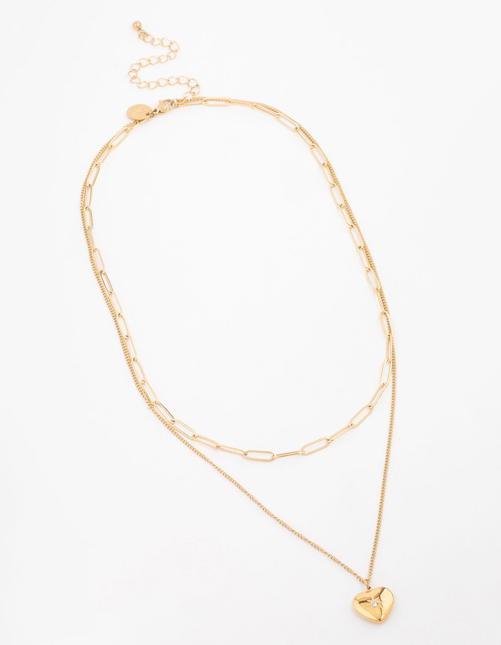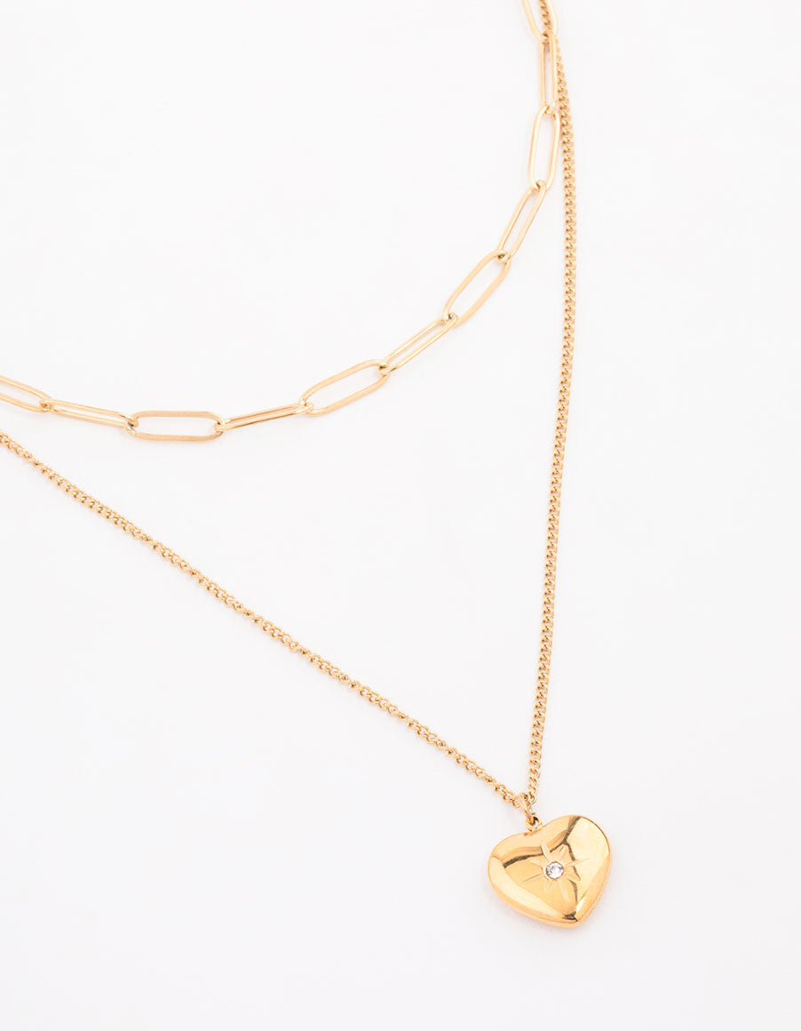 Waterproof Gold Plated Stainless Steel Heart Layered Pendant Necklace