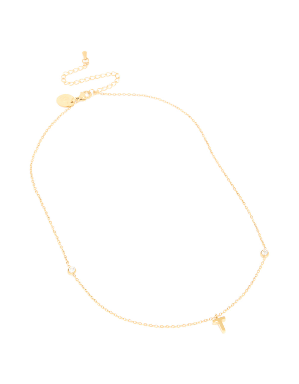Waterproof Gold Plated Stainless Steel Letter T Dainty Pendant Necklace