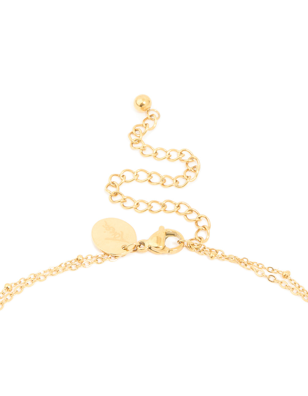 Waterproof Gold Plated Stainless Steel Pear Shaped & Celestial Layered Necklace