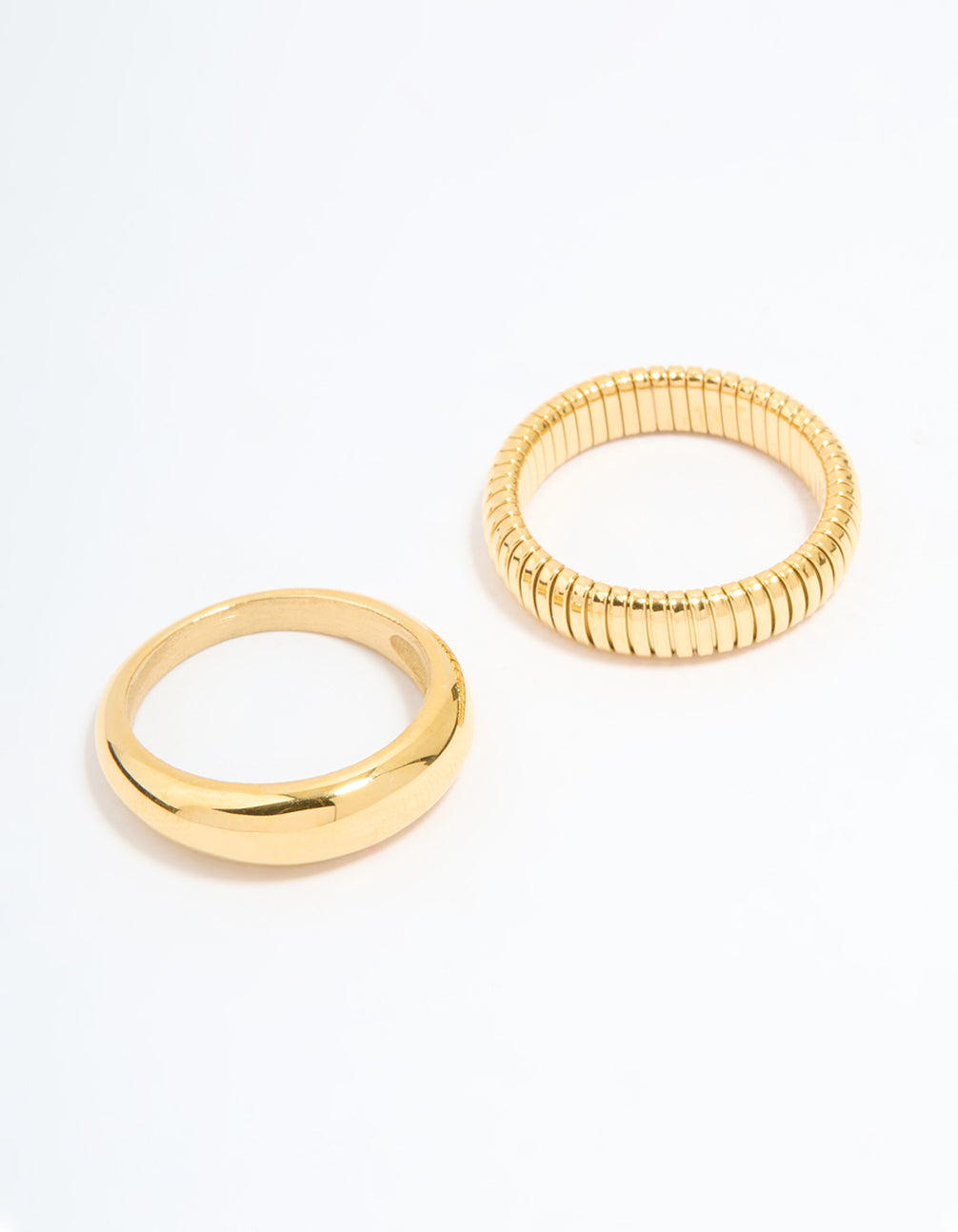 Waterproof Gold Plated Stainless Steel Ridge & Smooth Rings 2-Pack