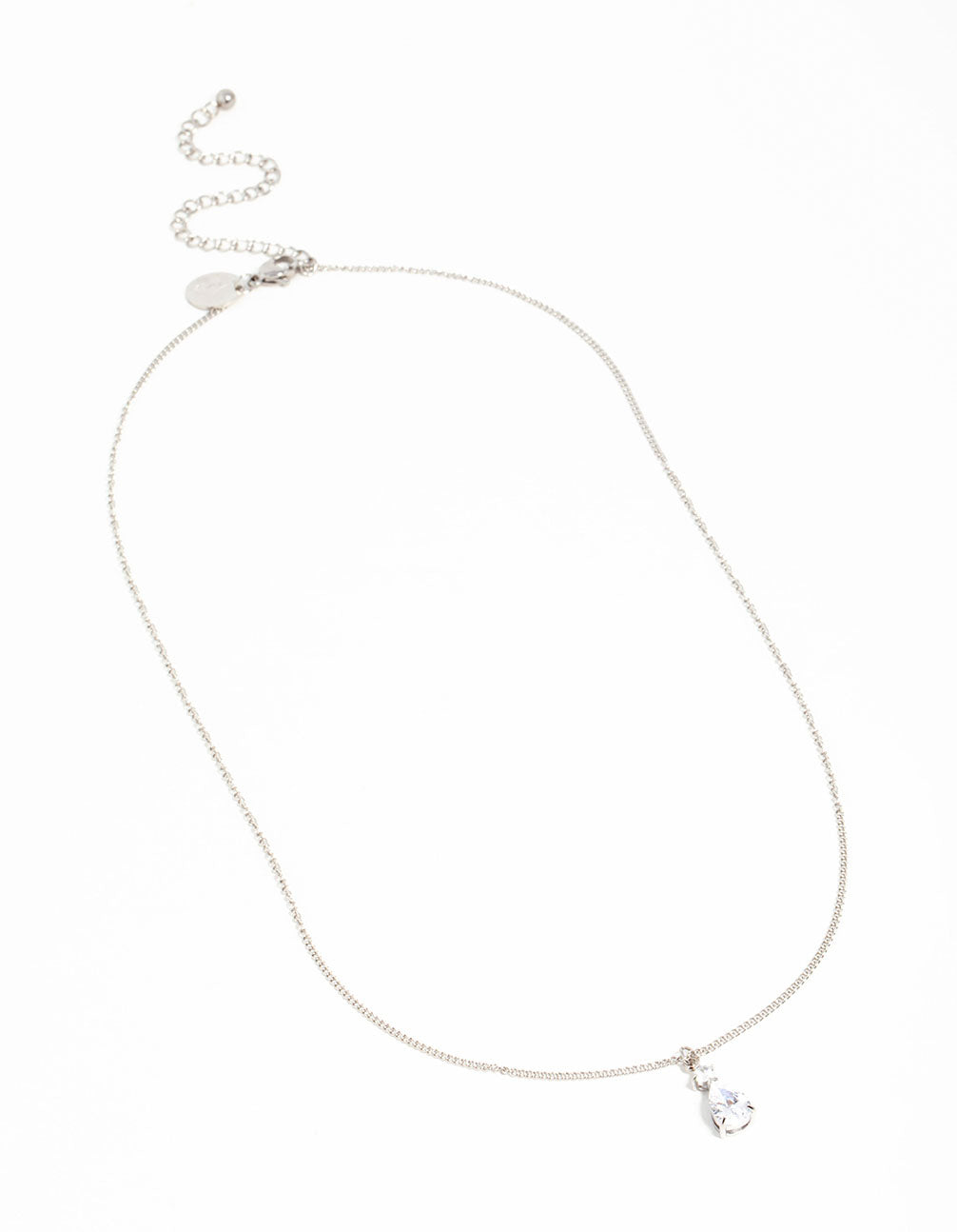 Waterproof Stainless Steel Cubic Zirconia Pear Pendant Necklace