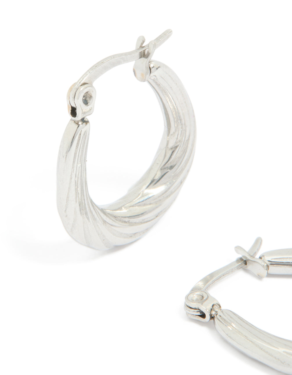 Waterproof Textured Stainless Steel Oval Hoop Earrings