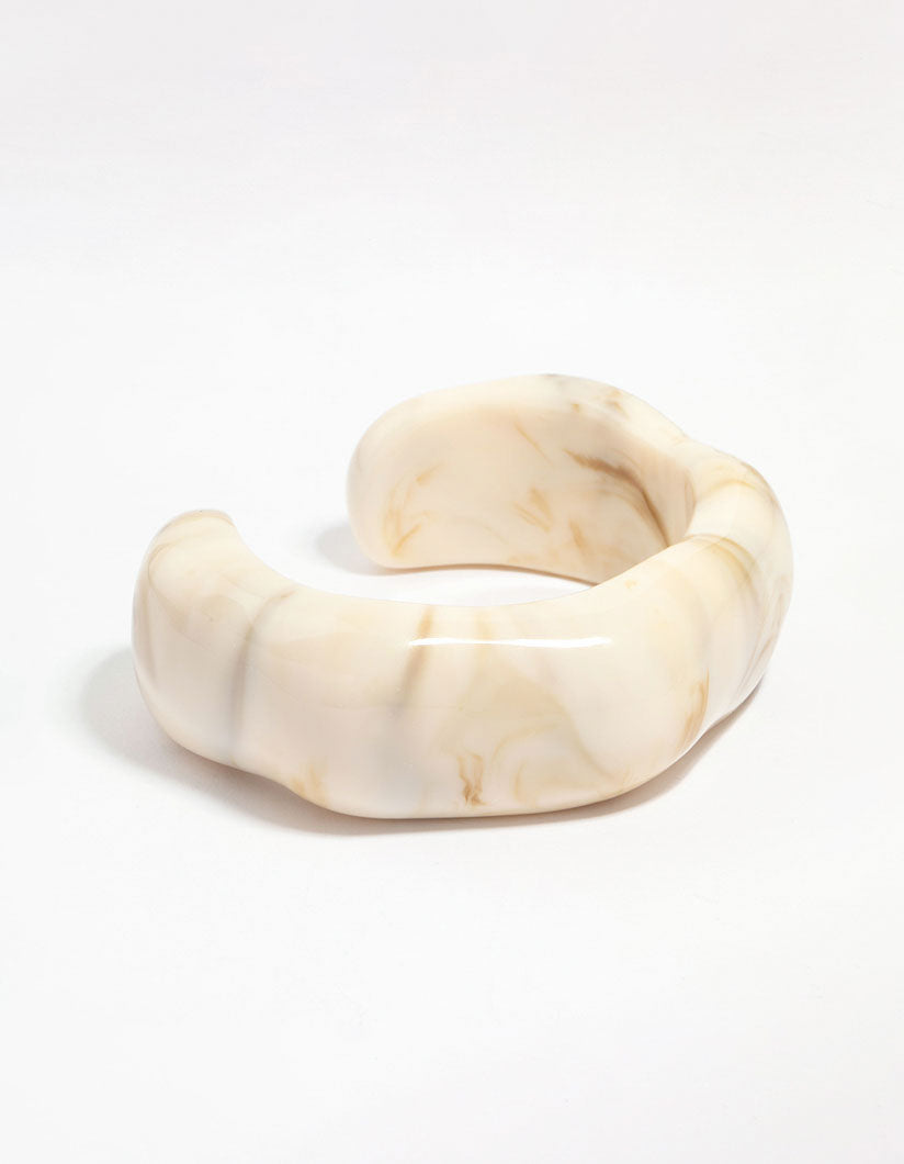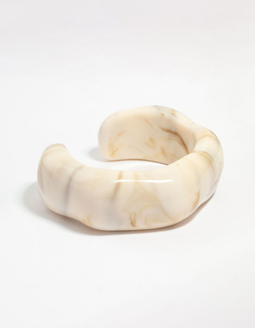 Make a Statement with this wrist cuff! Featuring a white marbled acrylic base, it adds an artsy touch to your wrist game.