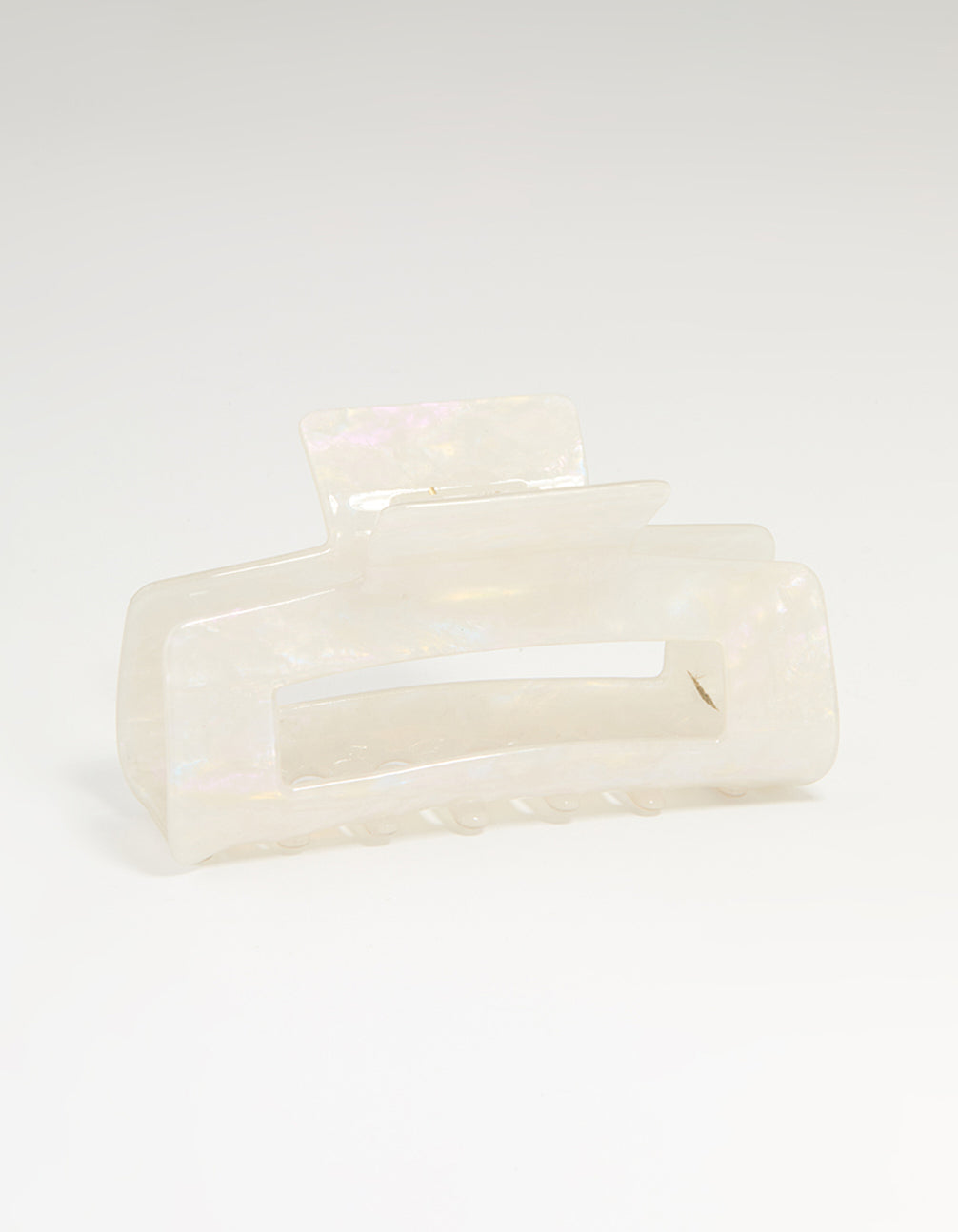 Keep your hair looking flawless with this White Acrylic Rectangle Claw Clip. Designed with a sleek rectangular shape and a clean white iridescent type finish, this claw clip adds a polished touch to any look. Perfect for taming loose strands or creating chic updos, it's ideal for everyday wear, whether you're heading to the office, meeting friends for coffee, or enjoying a relaxed day out. The acrylic design ensures comfort, while its sturdy grip keeps your hair secure all day long. Pair it with casual outfits like jeans and a jumper or use it to complement a dressier ensemble for a night out. Versatile, stylish, and practical—this claw clip is your new go-to for hair essentials!