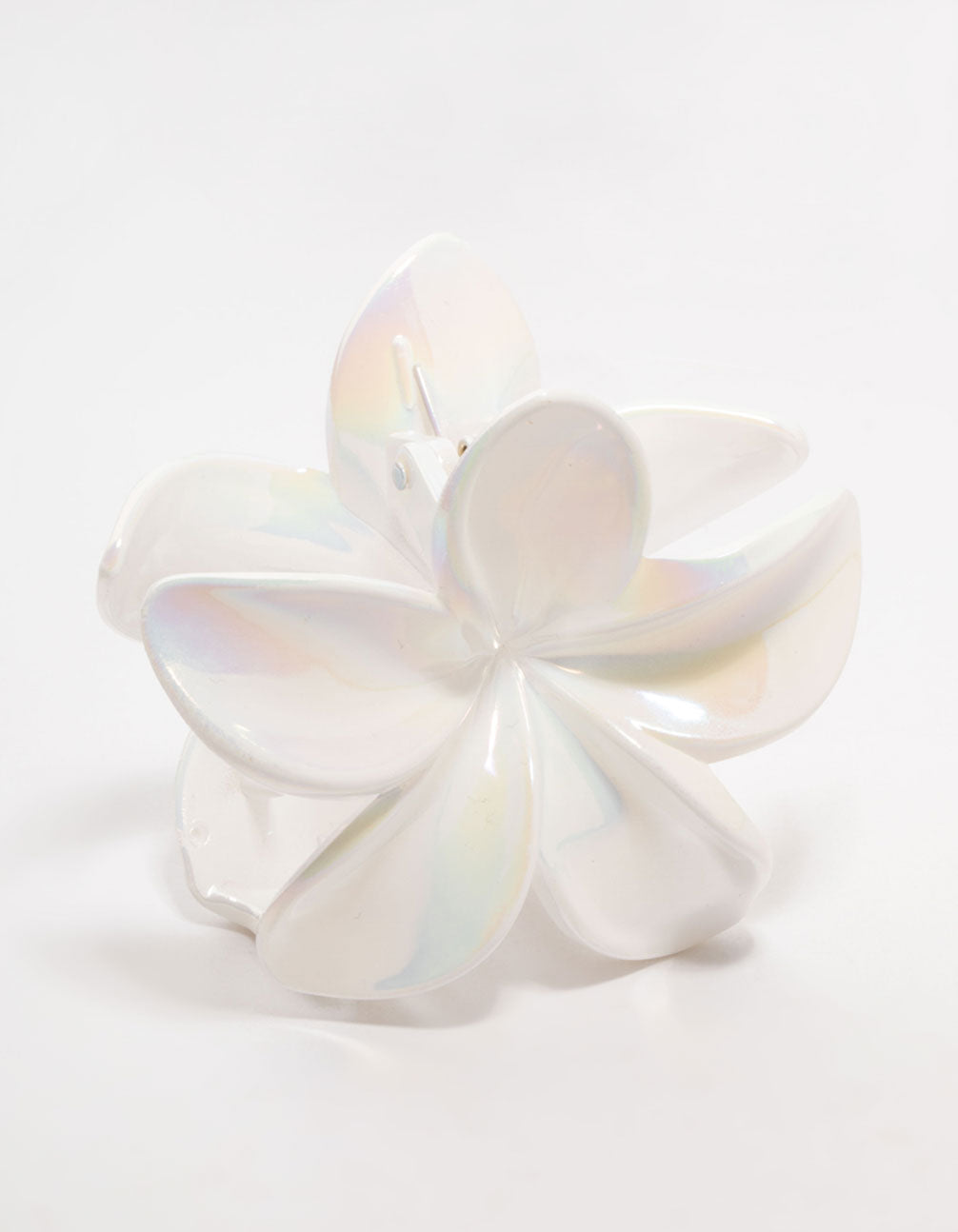 Embrace your inner island goddess with this elegant white frangipani claw clip. This claw clip secures messy buns or beachy waves, adding the perfect finishing touch to your tropical getaway.