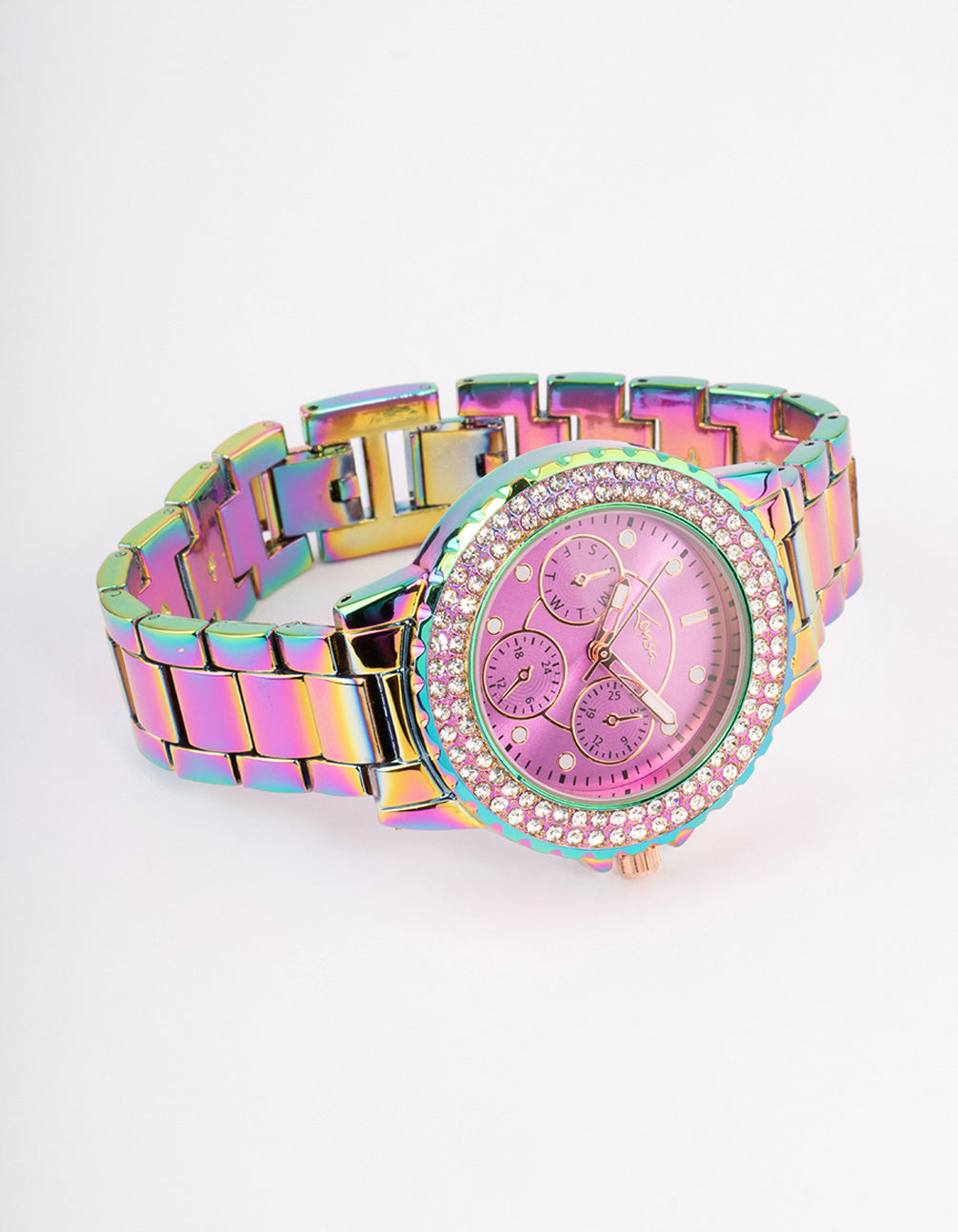 - This watch features a metallic setting with a hint of bling for a standout finish.