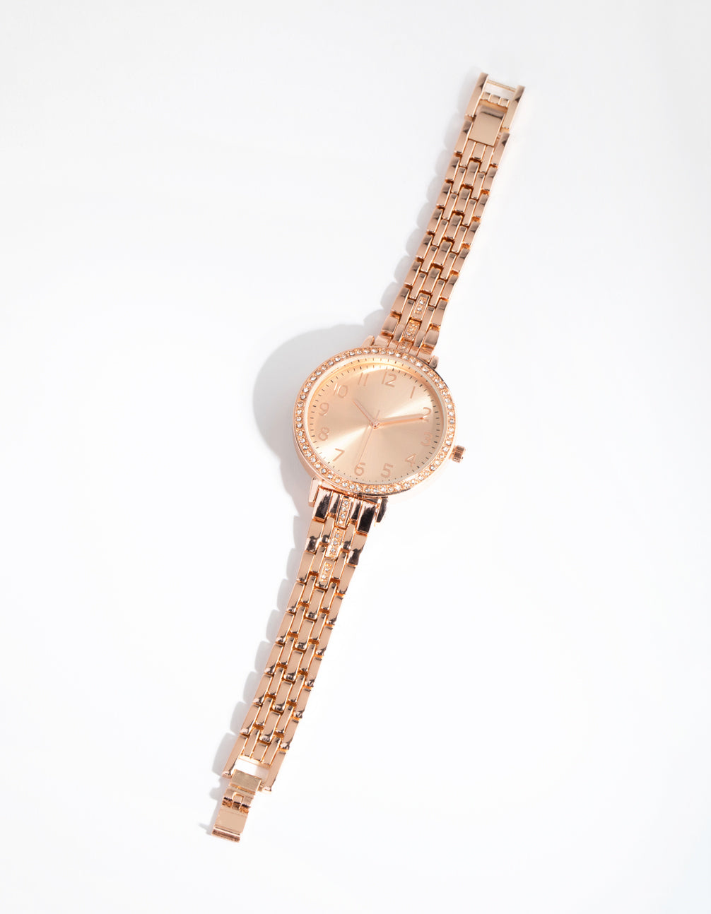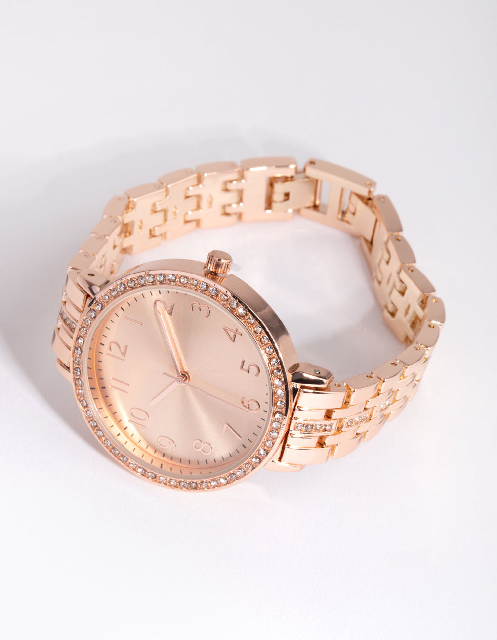 Tell the time and look stylish while doing it, a watch is the ultimate useful fashion accessory! This one has a rose-gold-toned link strap and dial. It also boasts a lovely diamante-studded bezel, which is sure to get you noticed!