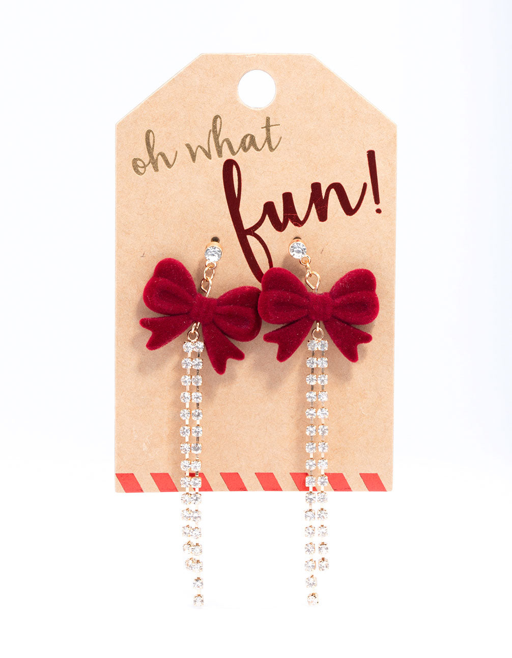 • These diamante drop earrings feature lush, velvet bows for a refined, festive look.