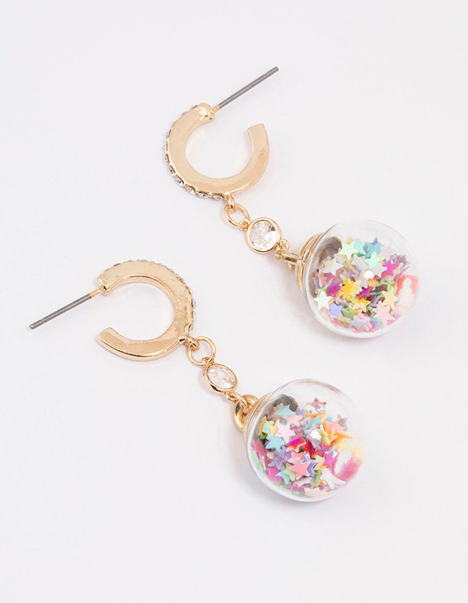 - These gold-toned drop earrings feature a diamante encrusted huggie hoop adorned with baubles filled with star motifs.