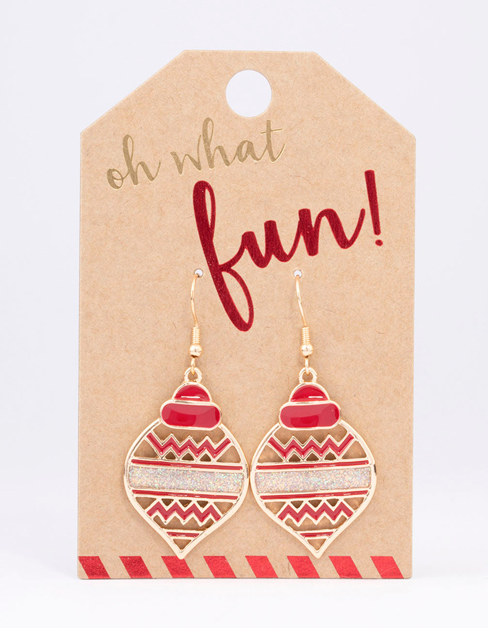 • These gold-toned drop earrings feature red and silver glitter baubles for a decorative finish to your outfit.