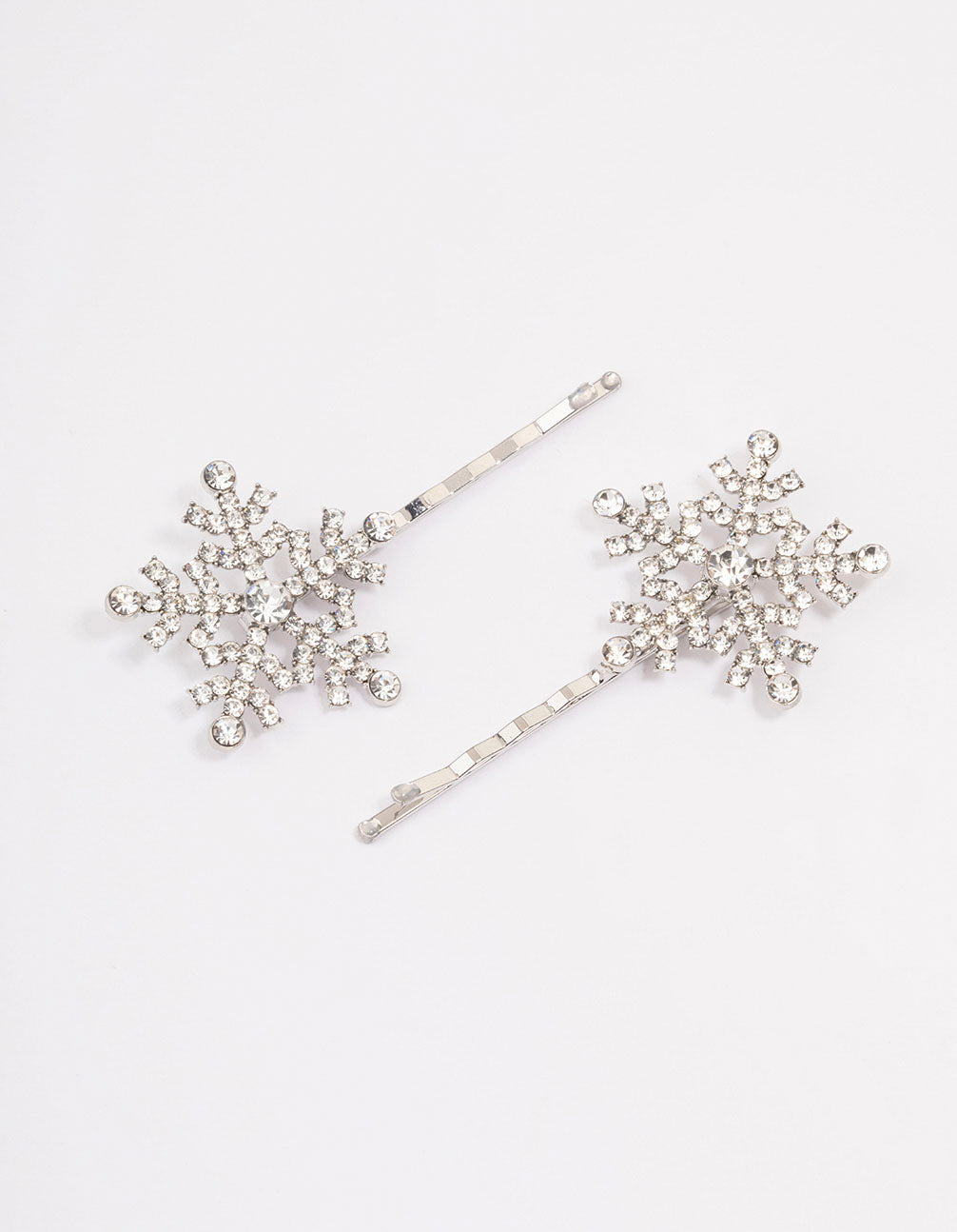 - Elevate your holiday hair with these silver-toned, diamante snowflake hair pins.