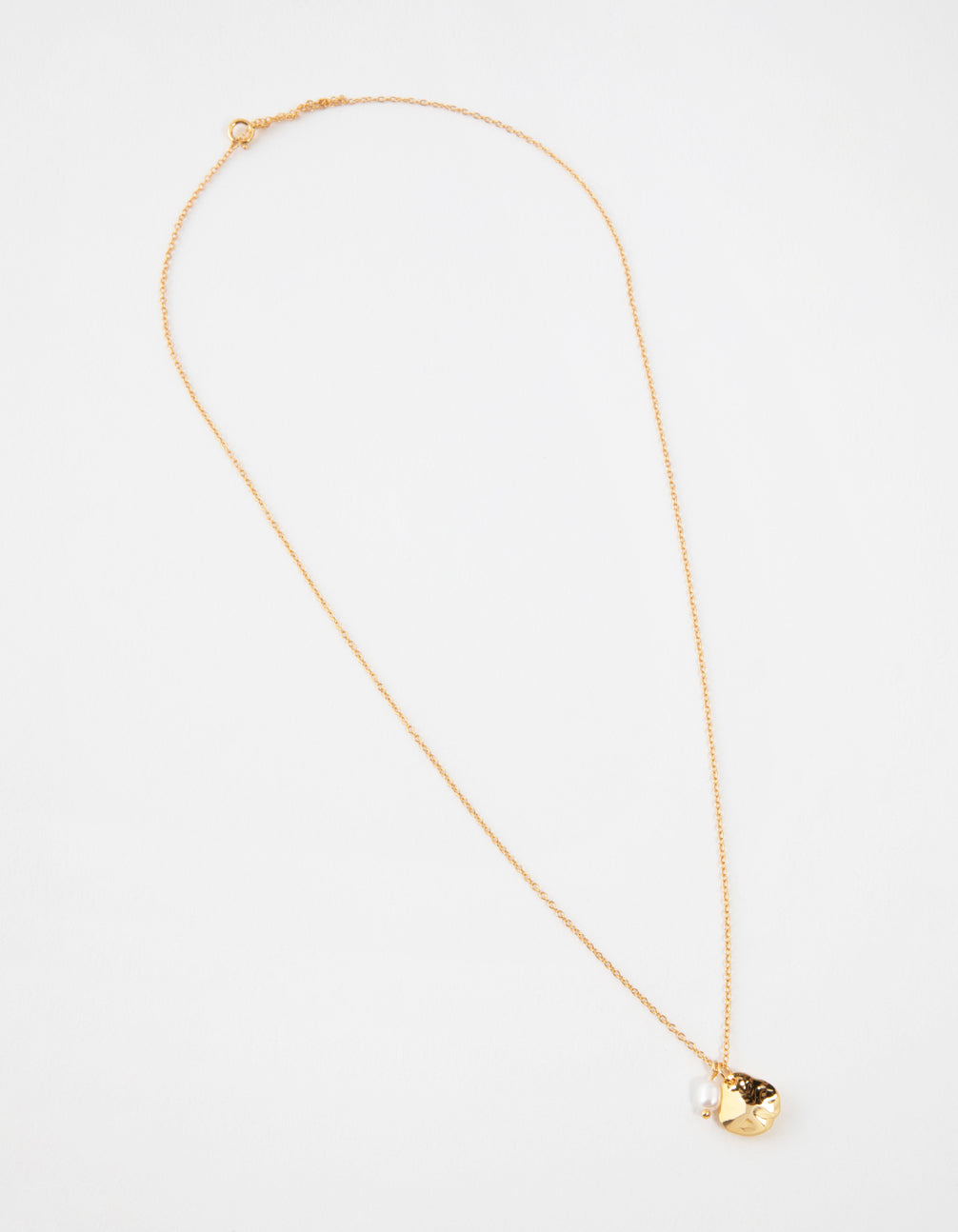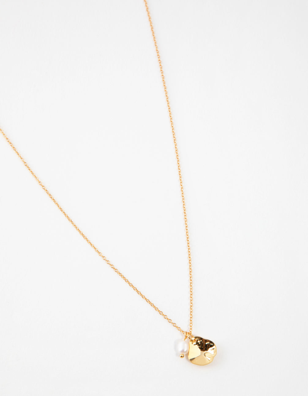 Spoil yourself with a gold-plated necklace! This cupchain piece boasts a freshwater pearl and hammered pendant attachments on a stunning gold-plated setting. Pair with your favourite eveningwear for a sophisticated ensemble.