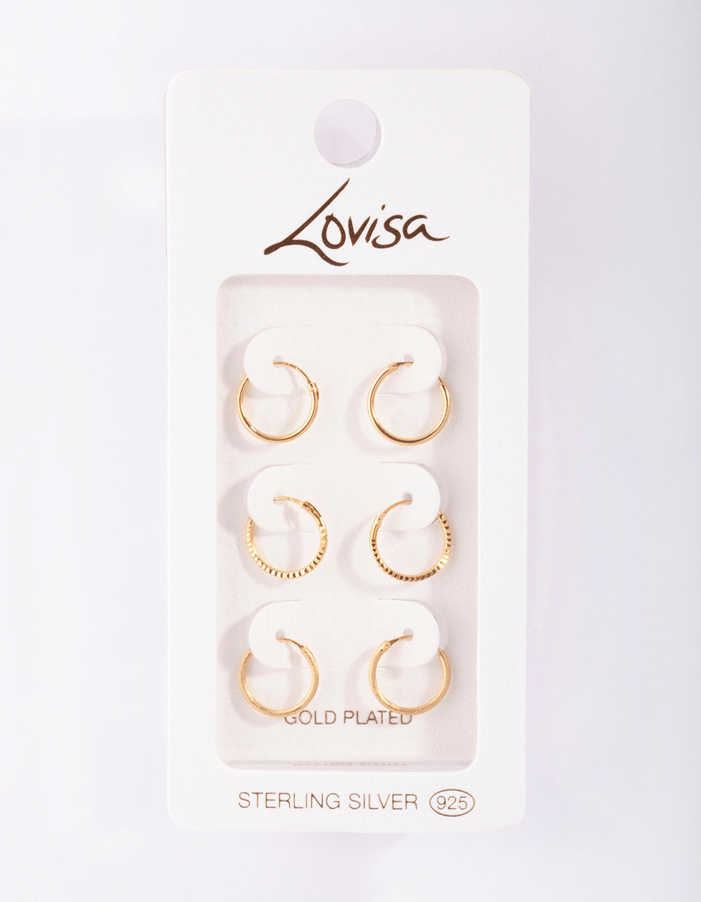 Gold Plated Sterling Silver Medium Textured Hoop Pack Earring