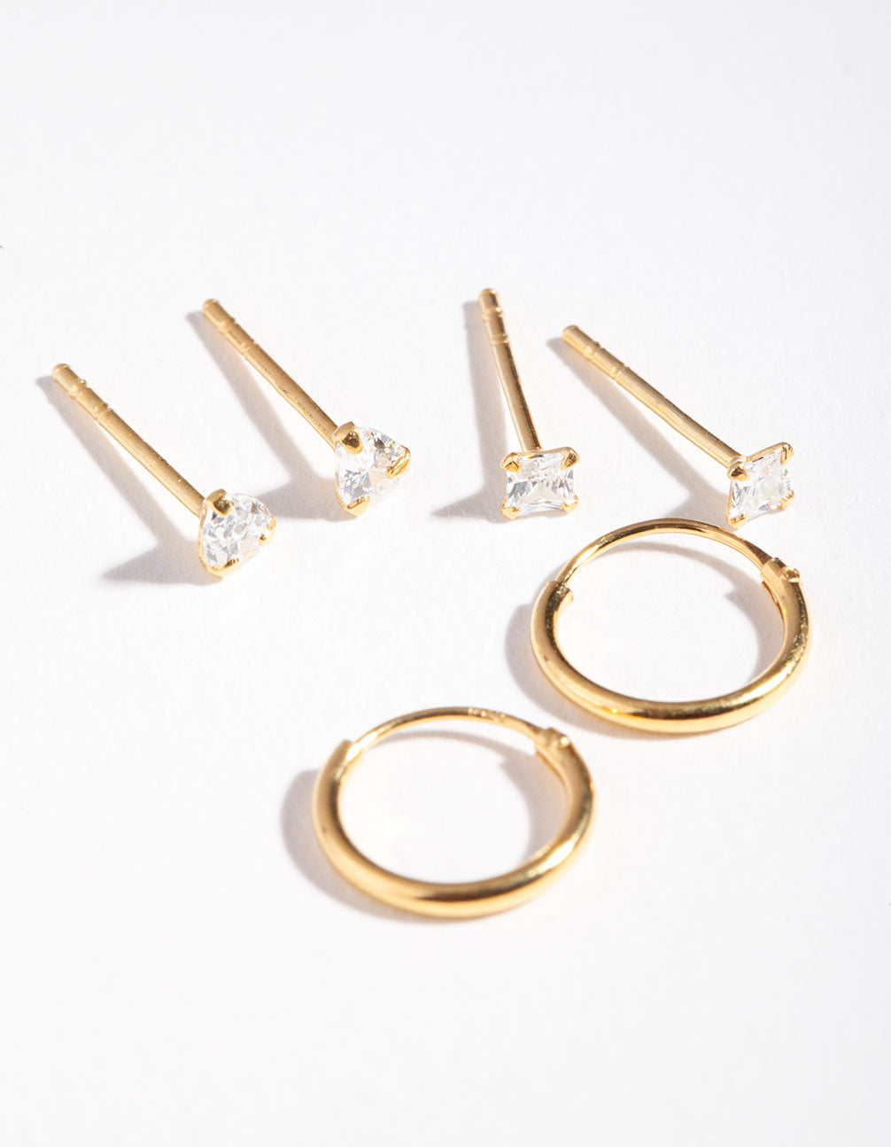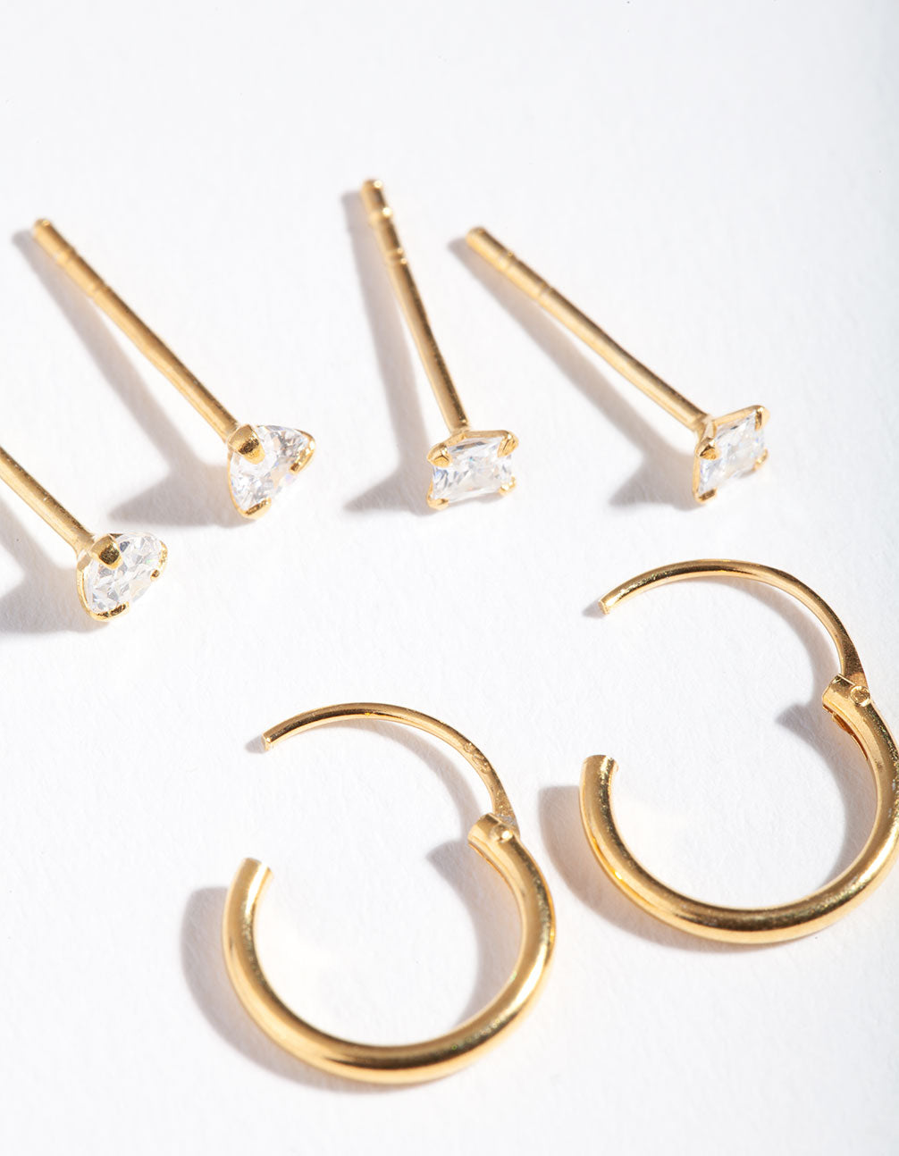 Gold Plated Sterling Silver Cubic Zirconia Stud Hoop Earring Pack